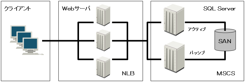 補足:障害発生時の「Session」の引継ぎはMSCS構成でも不可能であるため、「Session」を他ノードに引き継ぐ場合はMSCS構成ではなく、必ずネットワーク負荷分散(冗長化)構成と、ステート サービス・ステート データベースを構成する必要がある。これは、MSCSがサーバのメモリ状態をフェイル オーバーする機能を備えていない為である。MSCSでは、共有ディスク上の状態データのみ引き継ぐことができる。