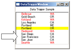 <DataTrigger Binding="{Binding Path=State}" Value="WA">