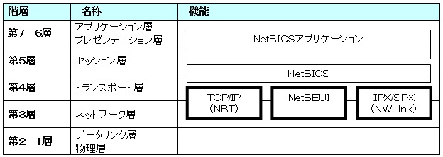 - また、NetBIOSのプロトコルがNetBEUIやIPX/SPXの場合は、