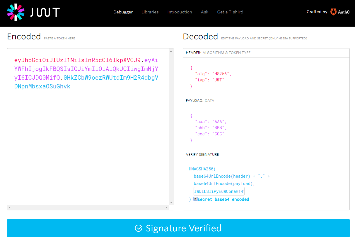 JSON Web Tokens - jwt.ioなどの検証サイトを使用して検証できれば、及第点に達していると言える。