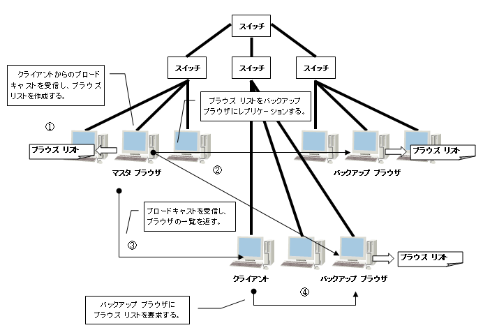 - 簡単に言えばコンピュータの一覧を保持する「ブラウズ リスト」を作成し、