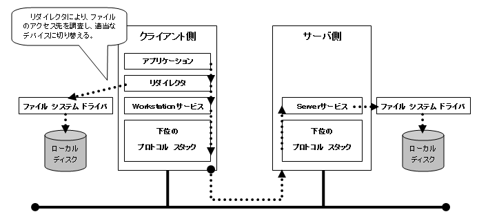 - クライアント側の「Workstationサービス」と、