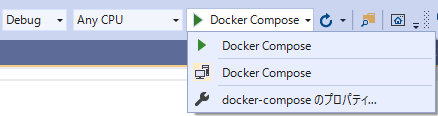 「docker-compose」をスタートアップ・プロジェクトに指定する。