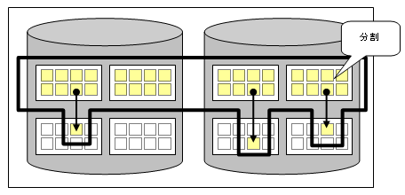 - 「ページ分割」が発生し、一部の「ページ」が、別の「エクステント」に格納されることがある。