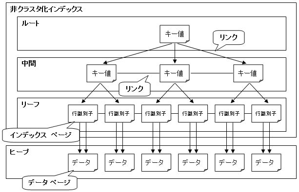 - インデックスは「インデックス ページ」から構成されており、「インデックス ページ」は、