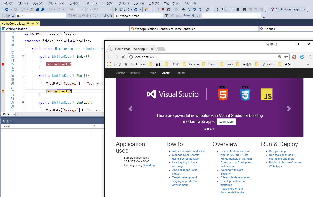 以下のように、適切にデバッグ実行されていることを確認できる。