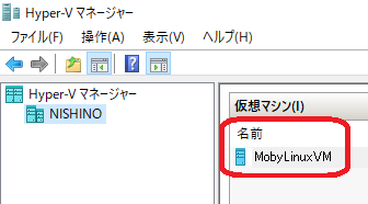 - 再起動後、Hyper-V上にLinux VMを確認できる(MobyLinuxVM)。