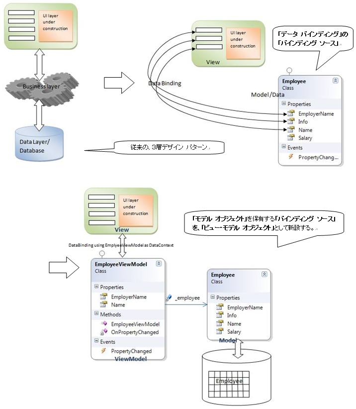 前述の「データ バインディング」の仕組みを活用したデザイン パターンであり、