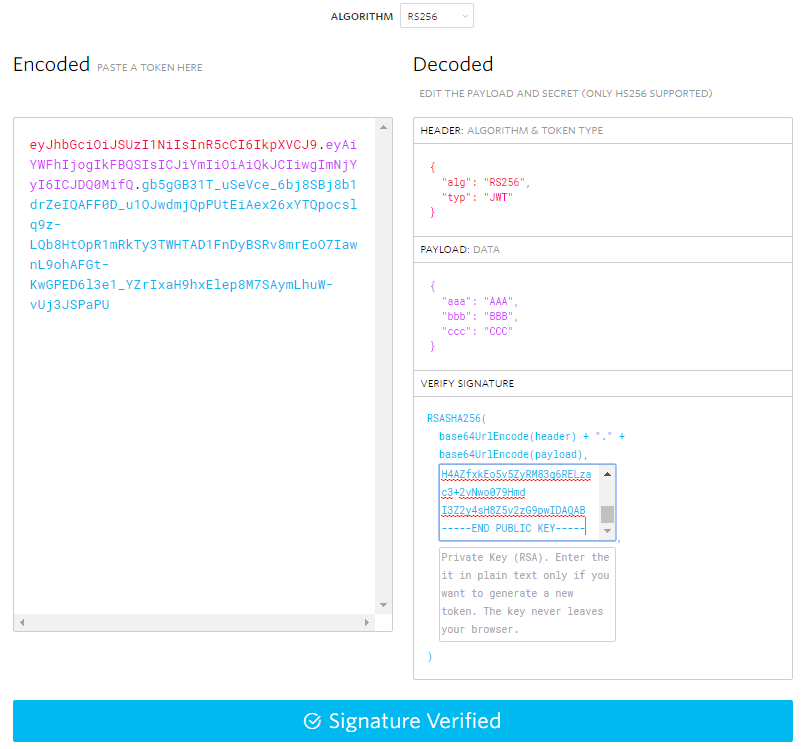 RS256は署名に使用した秘密鍵に対応する公開鍵を指定する。