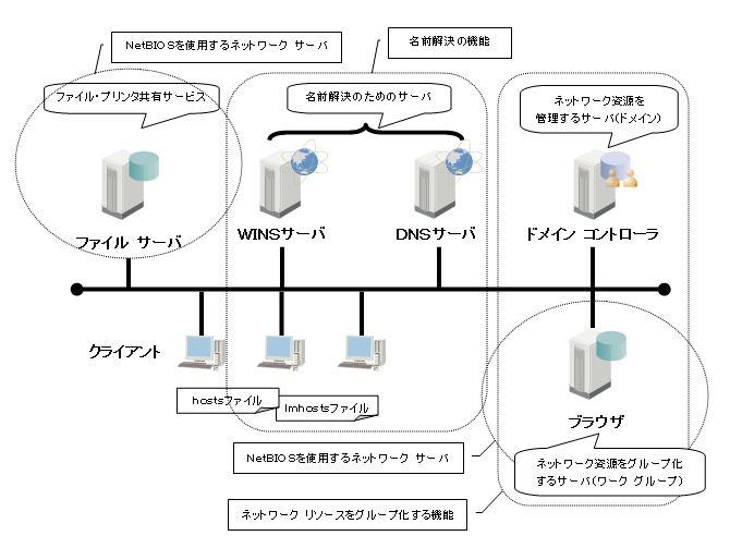 NetBIOS名 ⇒ IPアドレスへの名前解決機能